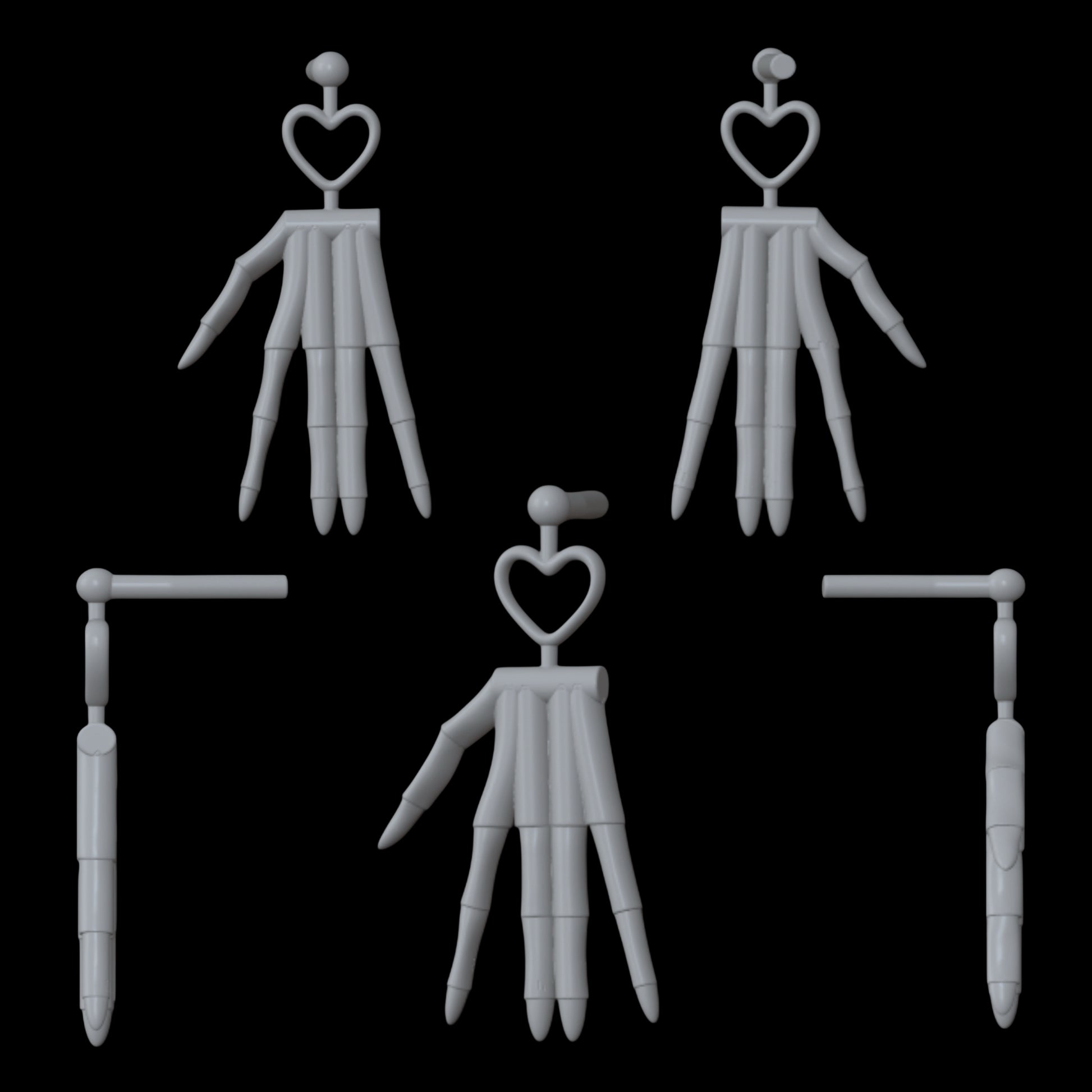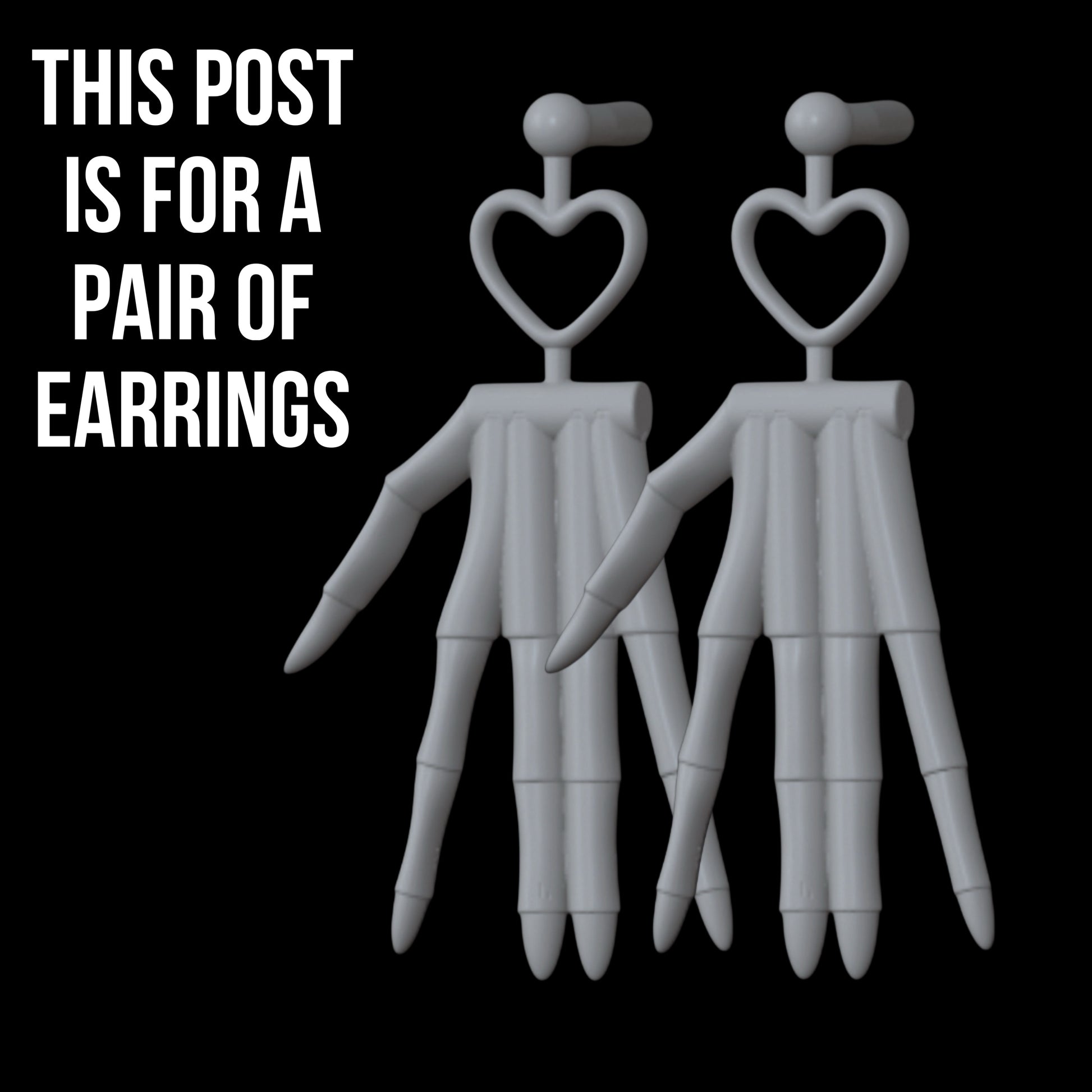 This is a pair of 3d printed luna bones heart skeleton hand earrings.