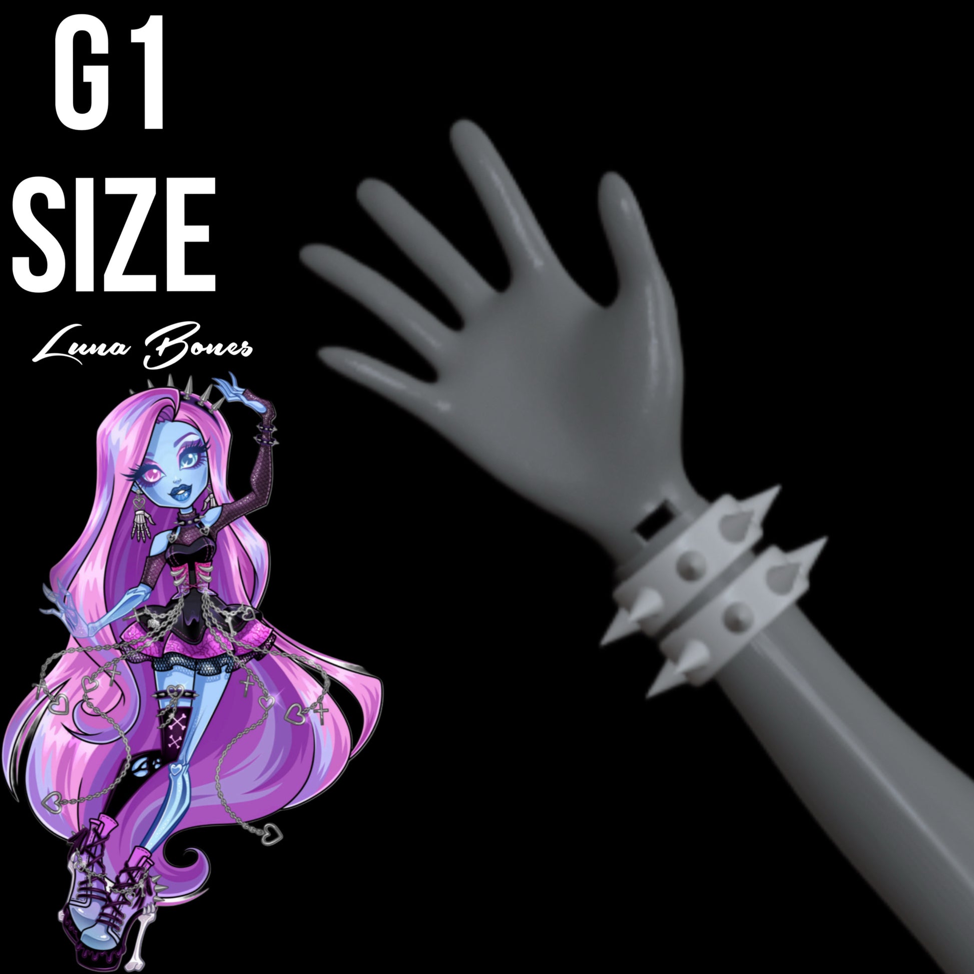 This is a 3d printed luna bones spiked bracelet set made for g1 monster high dolls.