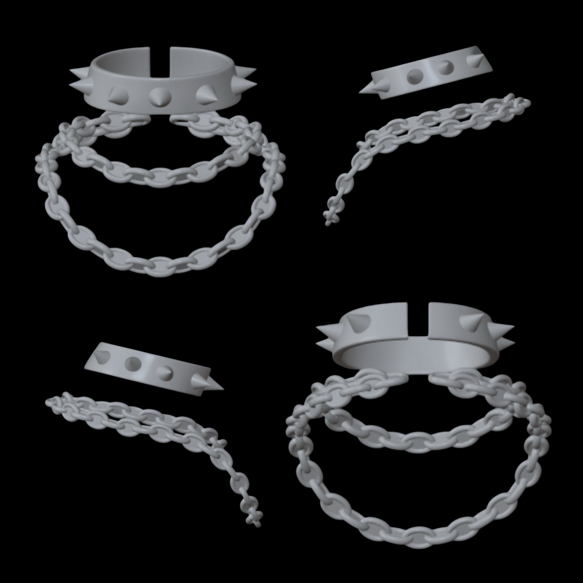 This is a 3d printed luna bones spiked choker and chained necklace set made for g1 monster high dolls.