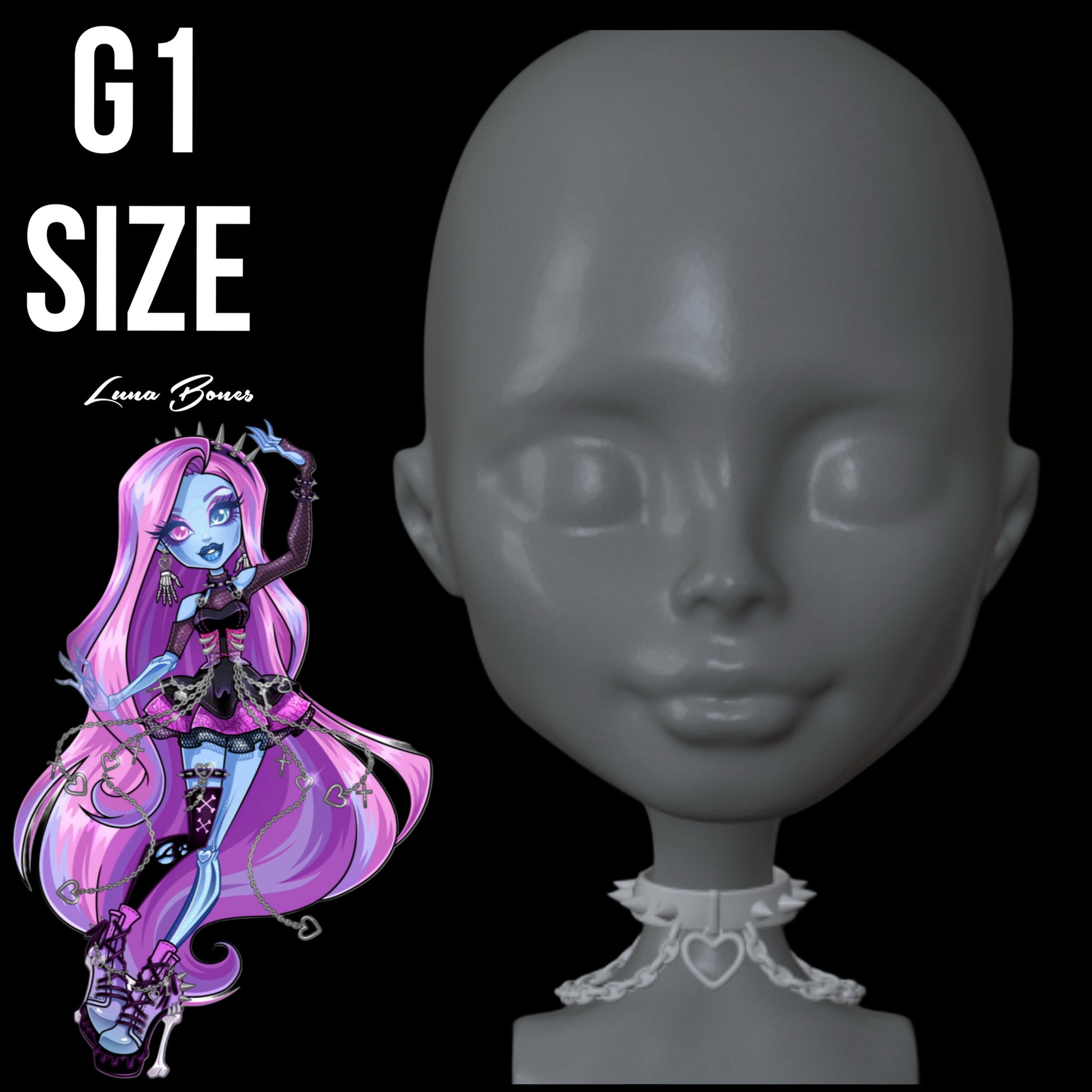 This is a 3d printed luna bones spiked heart chained choker made for g1 monster high dolls.