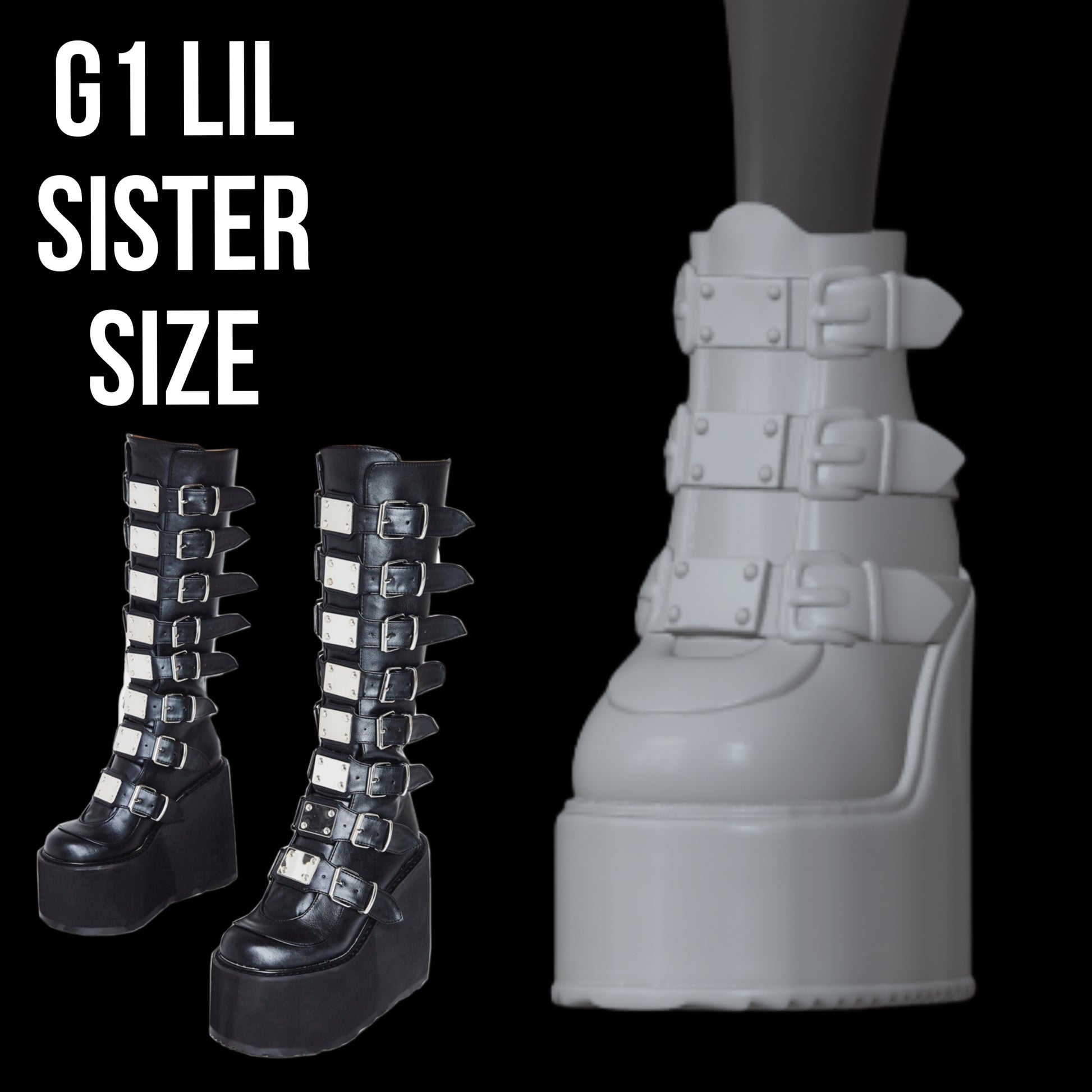 This is a 3d printed pair of short demonias made for g1 lil sister monster high dolls.